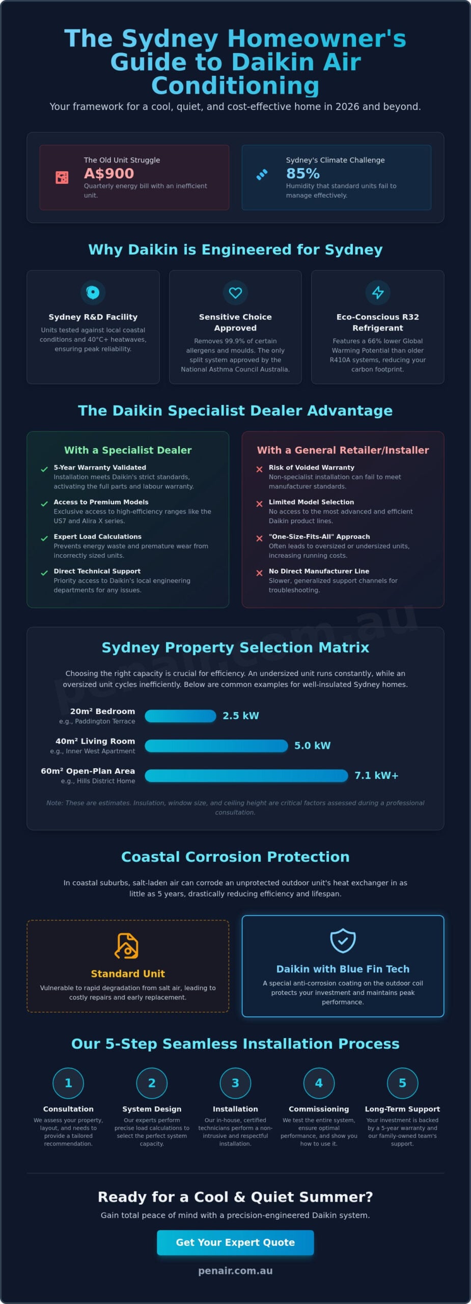 Last February, a homeowner in the Northern Beaches watched their energy bill climb toward A$900 while their old unit failed to cut through the 85% humidity. It’s a stressful situation that highlights why a precision-engineered Daikin air conditioning installation Sydney is the most reliable way to protect your family’s comfort and your budget. We understand that you want a home that stays cool and quiet without the anxiety of a massive quarterly power bill.